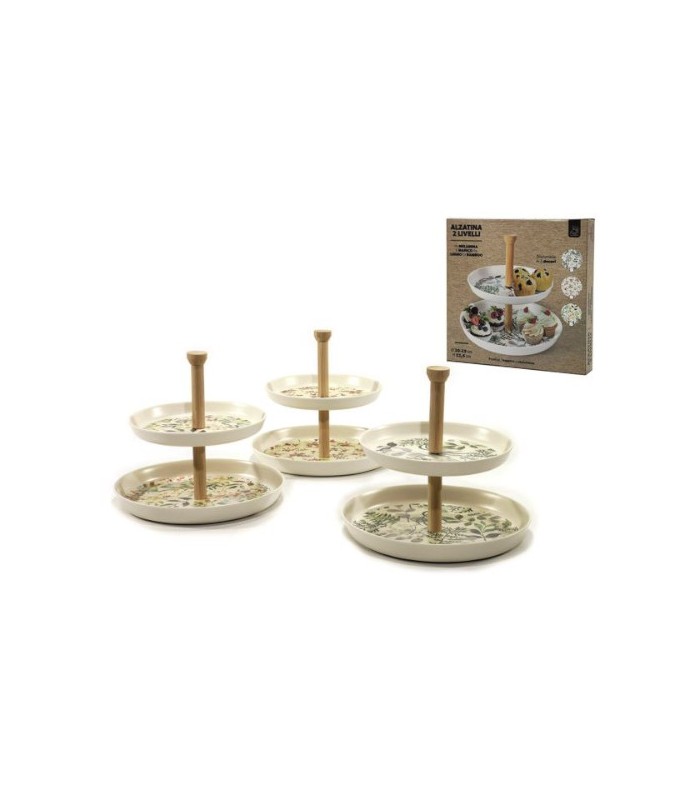 ALZATA 2 RIPIANI CM.25X22.5h DEC. FLOWERS -Alzatina da cucina -Con 2 ripiani -Dimensioni: diam 25x22.5H cm -Decorazione Flowers -Assortita in 3 colori