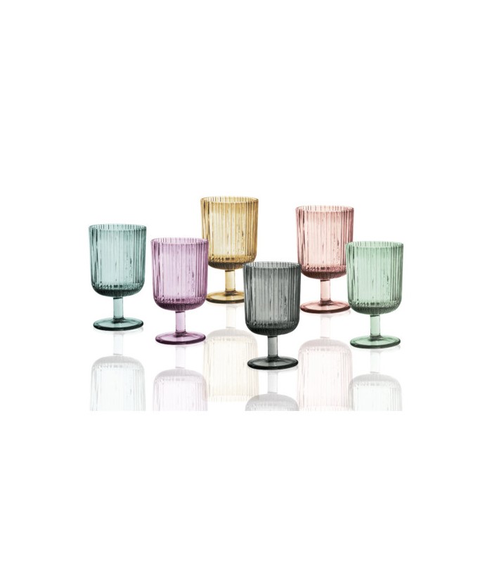 CALICE PLISSE SET 6 PEZZI ASSORTITI VETRO -Set calici Brandani -Composto da 6 pezzi -In vetro -Modello Plisse -Colori assortiti