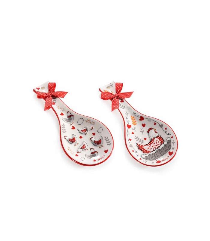 POGGIAMESTOLO IN CERAMICA CON GALLINELLA CON FIOCCO