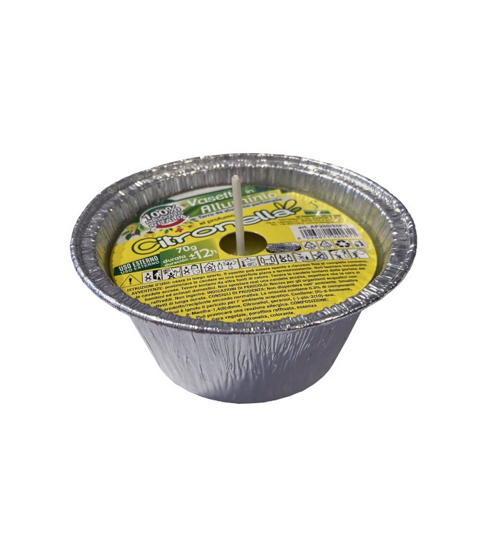 CITRONELLA BRICIOLA IN STAGNOLA CM 8,5X4H -Citronella piccola mod. Briciola -70 gr -Dimensioni: diam 8.5x4H cm -In stagnola