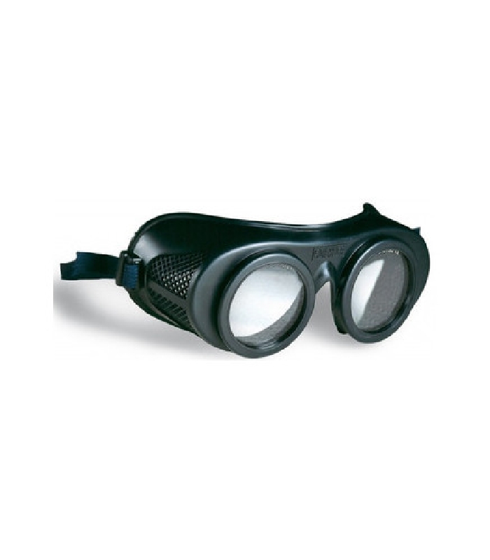 OCCHIALI PER SALDATORE -montatura in gomma -lenti bombate in carborock incolori -a norma EN 166 - EN 175