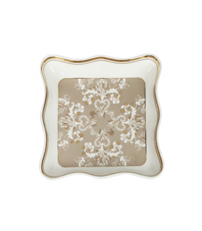 VUOTATASCHE DECO PORCELLANA TORTORA -Vuottasche quadrato Brandani -Modello Deco -In porcellana -Colore bianco e tortora -Dimensioni: cm 16.5x16.5