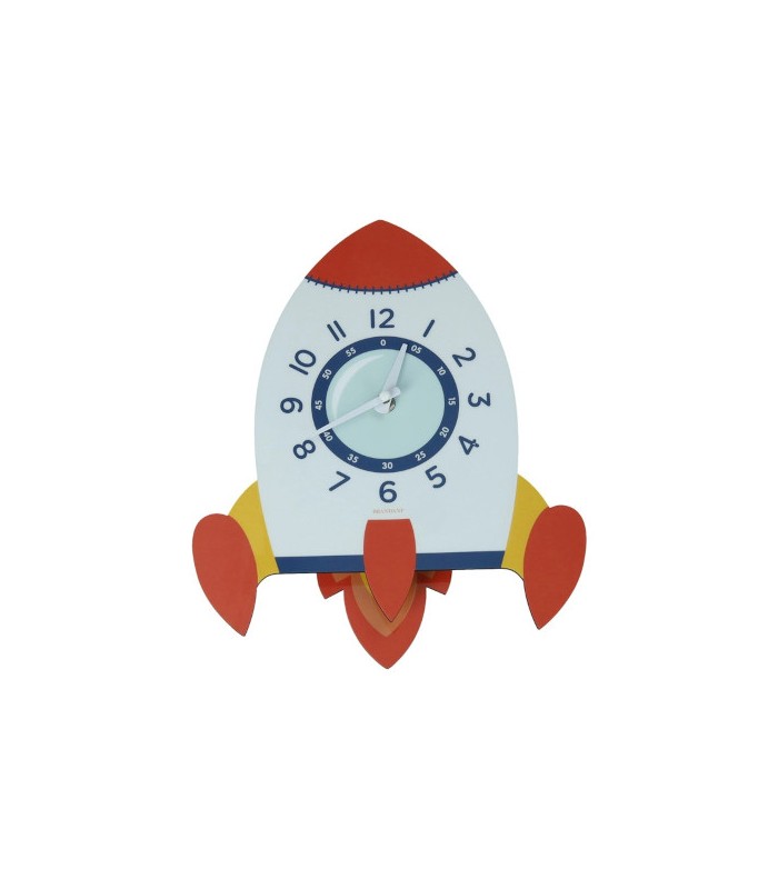 OROLOGIO RAZZO C/PENDOLO MDF -Orologio da parete Brandani -Per bimbi -A forma di razzo -Con pendolo -In mdf