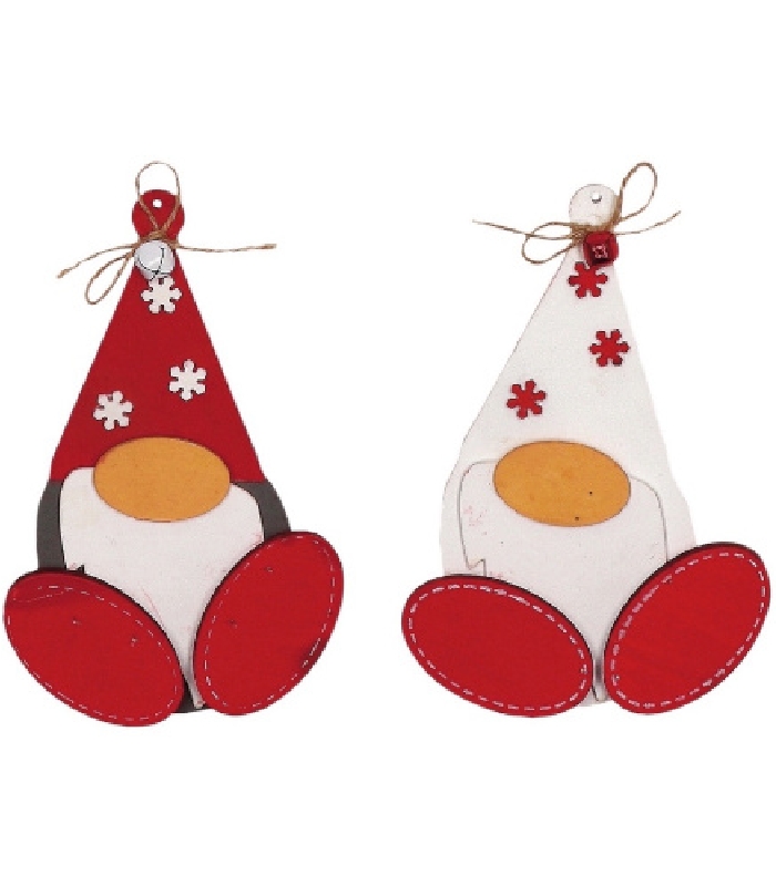 DECORAZIONE IN LEGNO DA APPENDERE MOD. FOLLETTO -Decorazione natalizia modello Folletto -In legno e tessuto -Da appendere -Dimensioni: cm 13x20H -Assortito in 2 colori