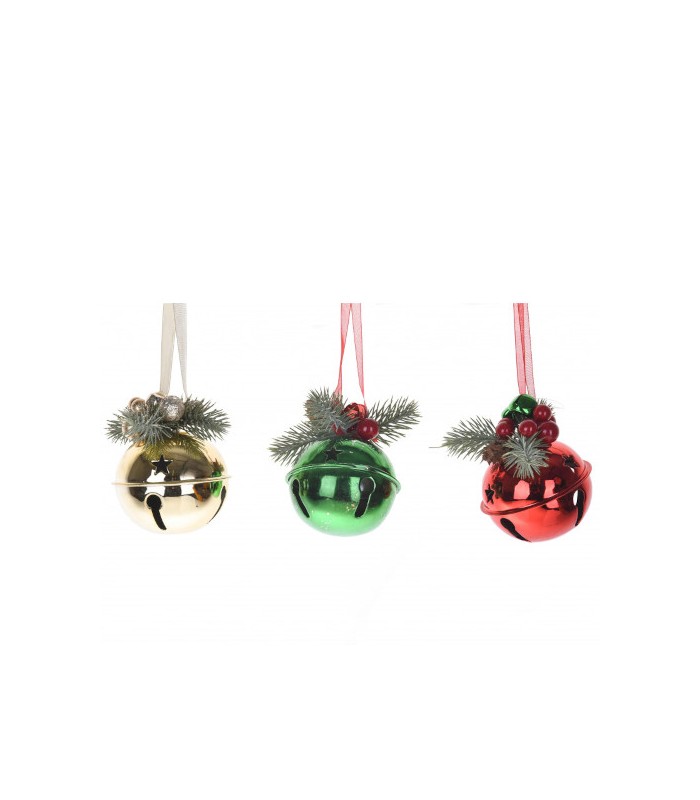 CAMPANELLA TRICOLORE ASSORTITA IN METALLO -Campanella natalizia in metallo -Con gancio per appenderla e decori natalizi -Assortita in 3 colori da poter richiedere -Dimensioni: diam 8 cm.