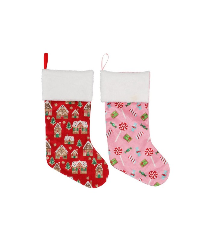 CALZA DI NATALE 2ASS. 45x25x1cm -Calza delle Befana -Assortita in 2 modelli da poter richiedere -Dimensioni: cm 45x25 -Con gancio da appendere.