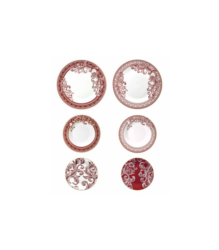 SERVIZIO TAVOLA 18PZ. ROYAL RED PORCELLANA