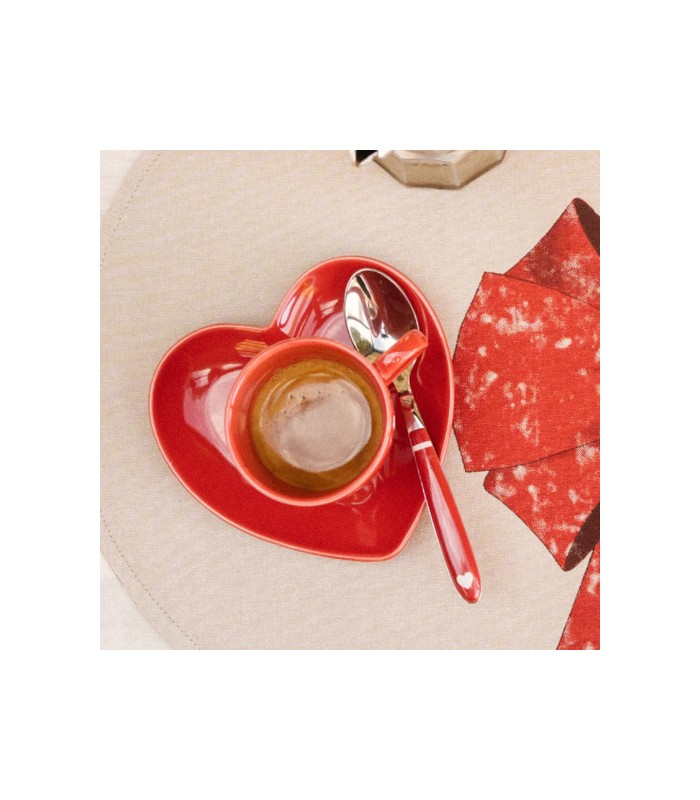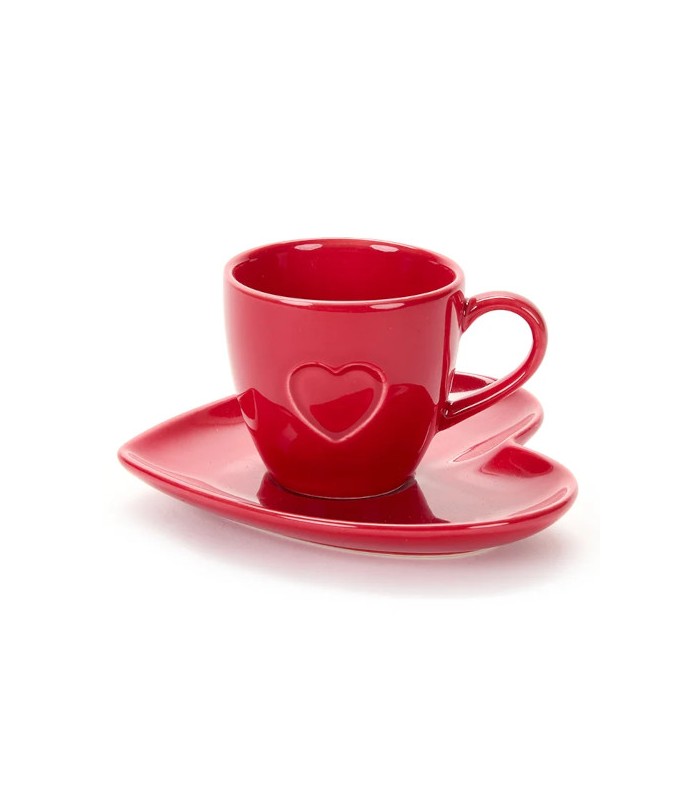 TAZZINA PIATTINO CUORE ROSSO 6,2x5,7 CM -Tazzina natalizia da caffè -Con cuore e piattino -In ceramica -Colore rosso -Dimensioni. diam 6.5x5.7H cm.