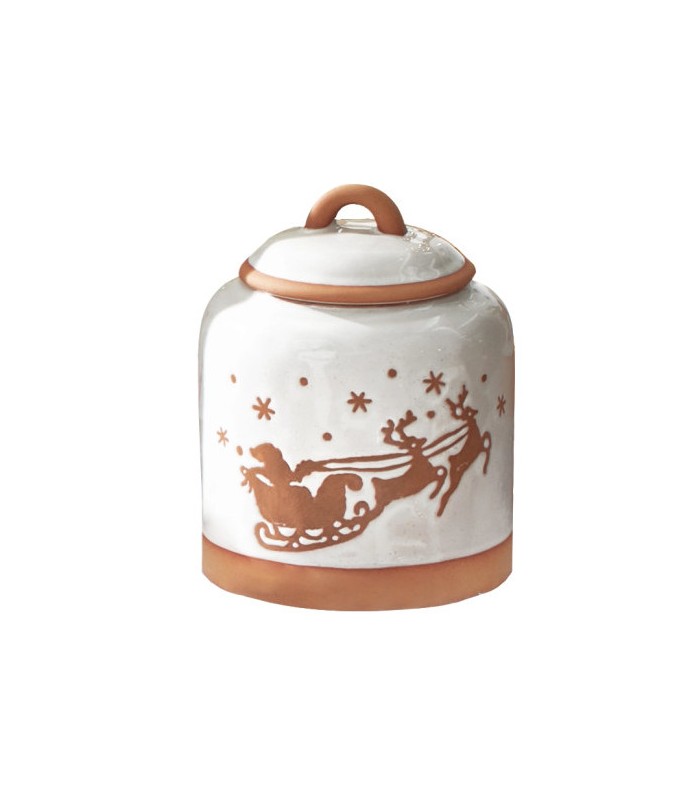 BARATTOLO PANDIZENZERO SLITTA STONEWARE -Barattolo Brandani Natalizio -Modello Pan di Zenzero -Colore bianco -Con decoro slitta -Coperchio con chiusura ermetica -In stoneware.