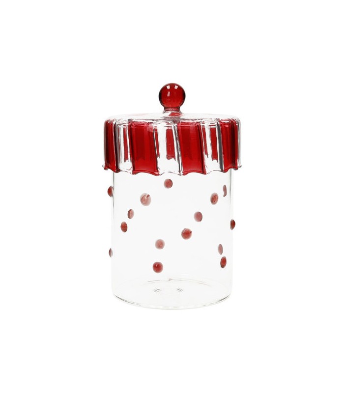 BARATTOLO POIS ROSSO VETRO -Barattolo Brandani in vetro -Con pois rossi e coperchio rosso -Modello Grande.